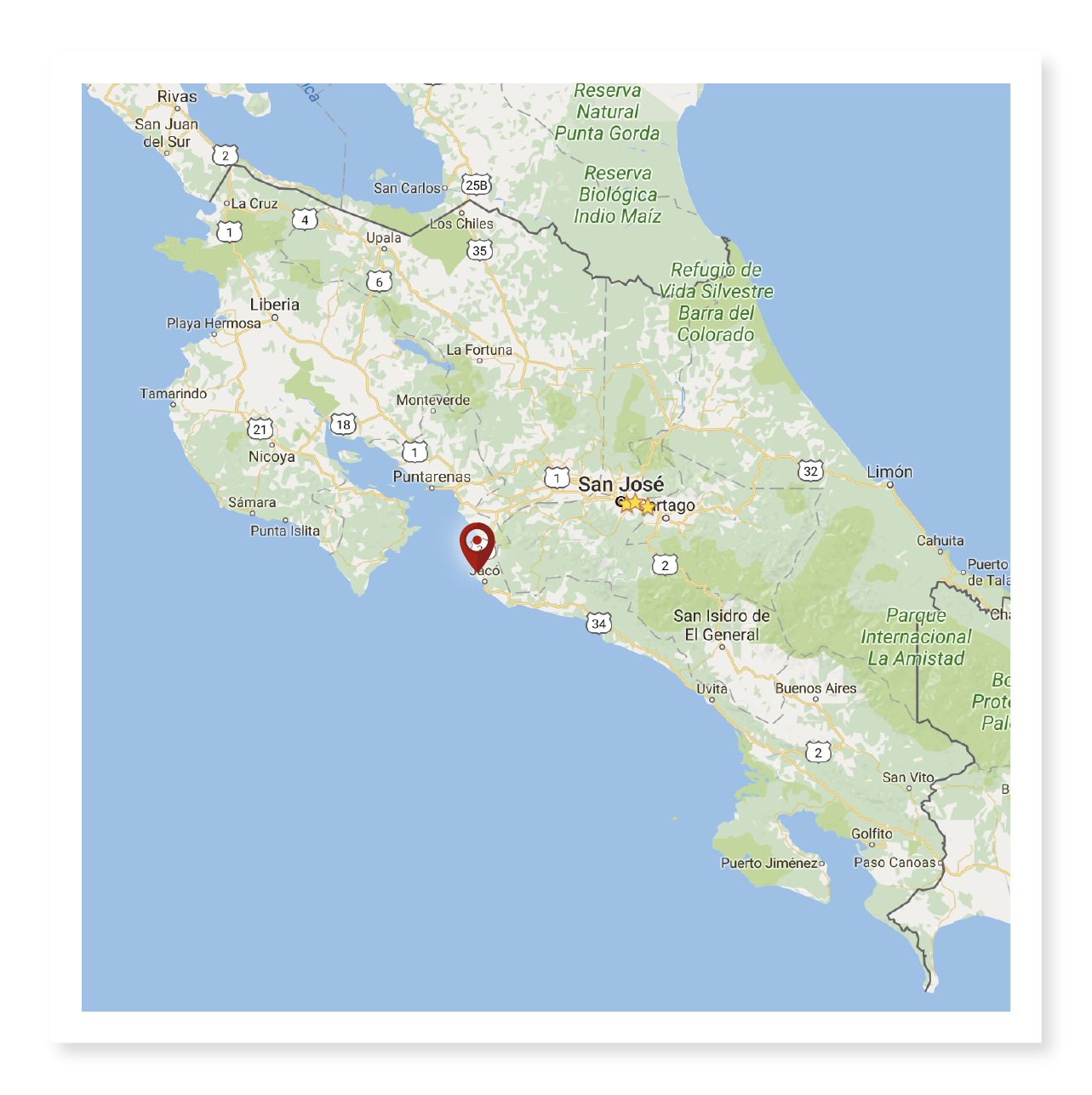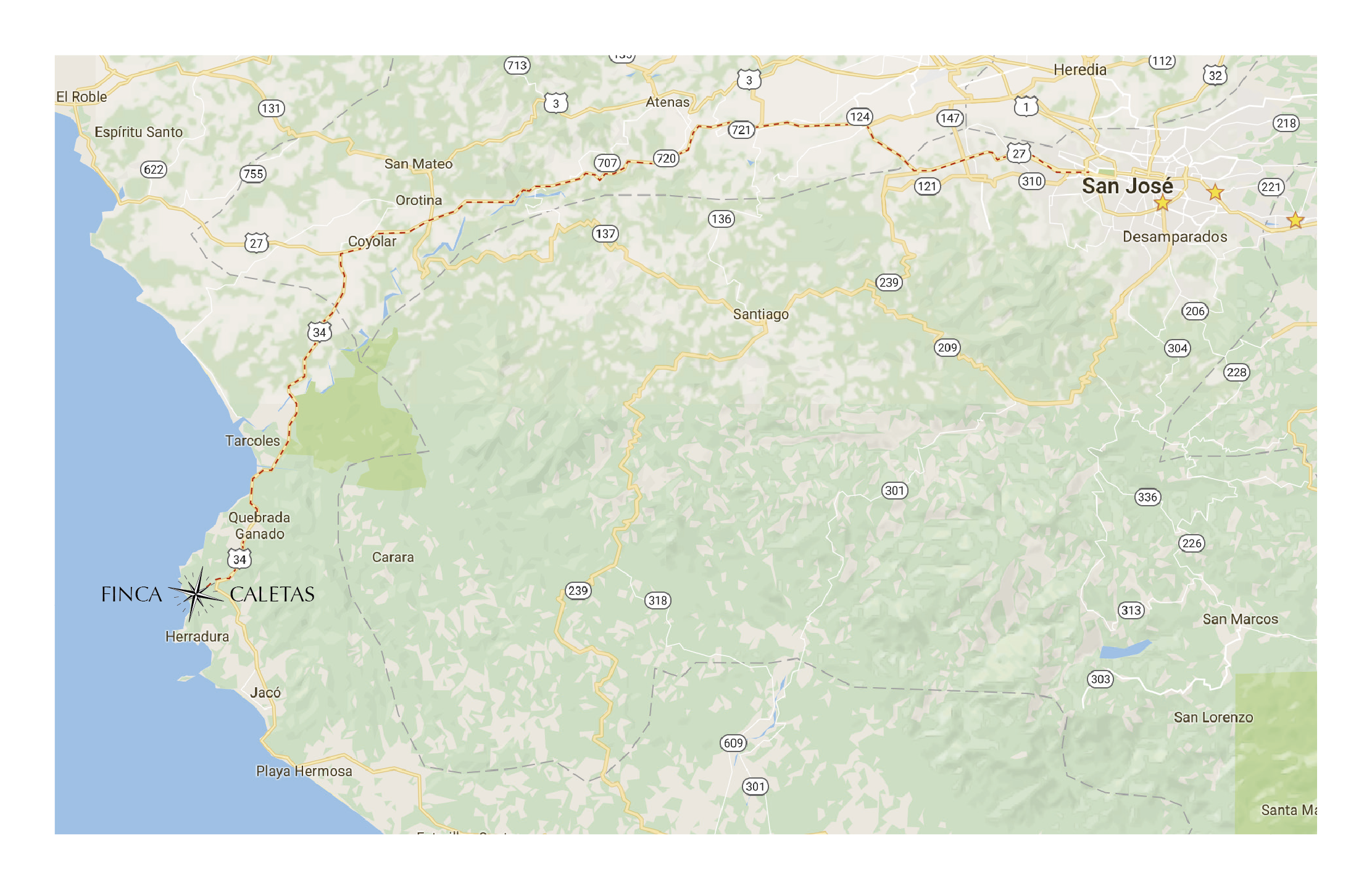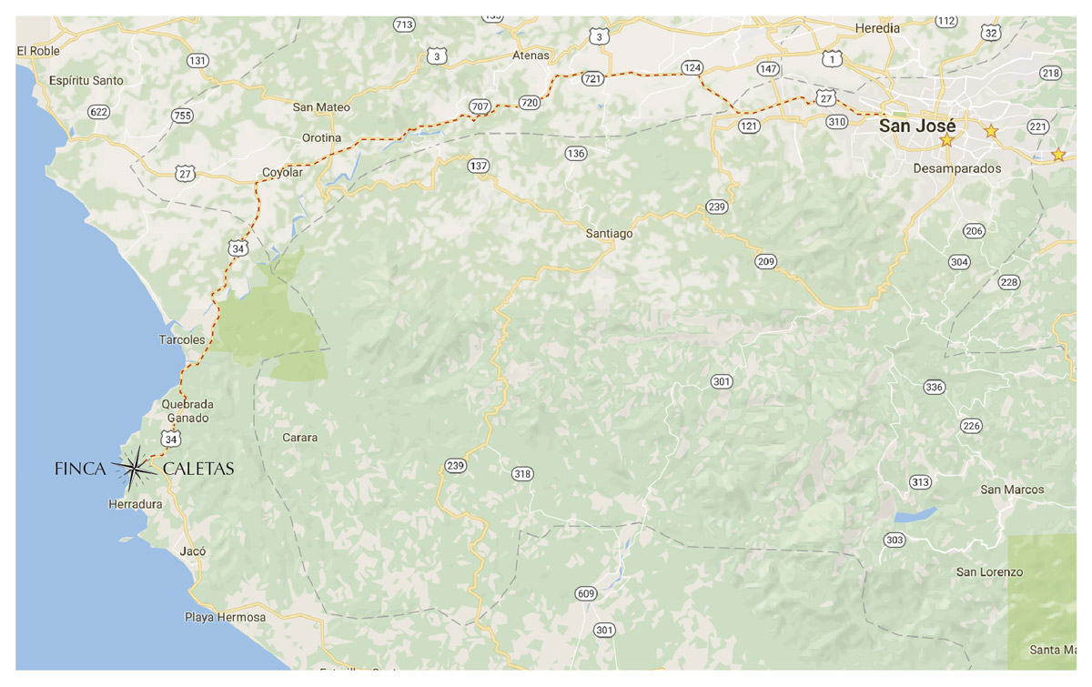 Carreteras nacionales 27 y 34 desde San José a menos de una hora de viaje del Aeropuerto Internacional Juan Santamaria hasta la propiedad.